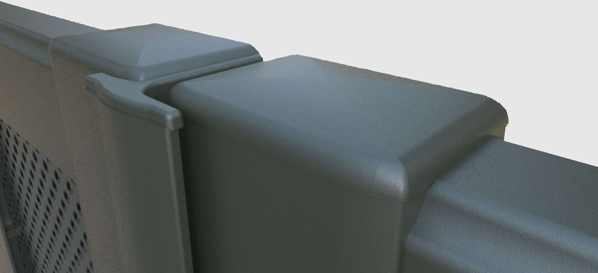 Bouchons supérieurs et inférieurs en aluminium de la couleur du portail.